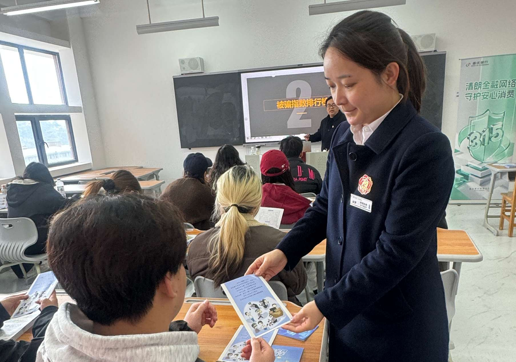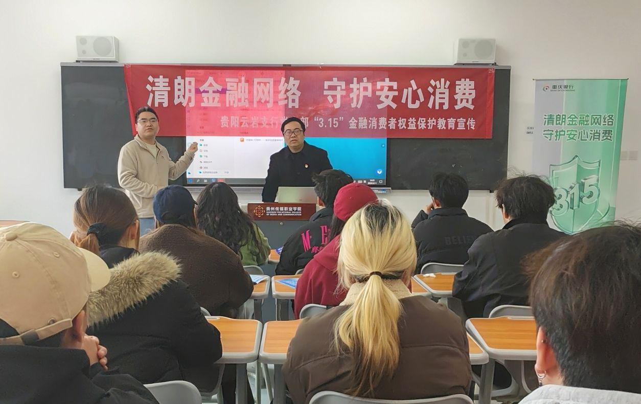 本次主题班会是重庆银行贵阳云岩支行在贵州传媒职业学院开展以“清朗金融网络 守护安心消费”为主题的金融知识宣传教育活动。