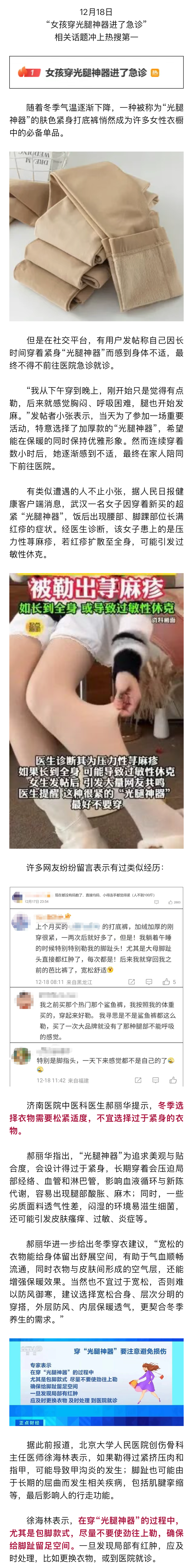 女孩穿“光腿神器”进急诊!医生提醒