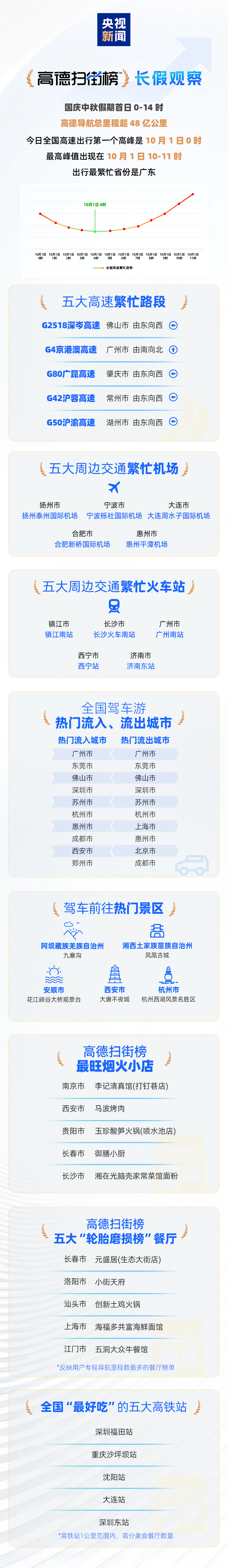 “高德扫街榜”则成为人们假期发现各地美味的重要依据,南京市李记清真馆(打钉巷店)、西安市马波烤肉、贵阳市玉珍酸笋火锅(喷水池店)、长春市御膳小厨、长沙市湘在光脑壳家常菜馆面粉成为全国广受欢迎的烟火小店;元盛居(生态大街店)、小街天府、创新土鸡火锅则登上高德扫街榜全国“轮胎磨损榜”,是人们专程导航前往里程数最多的餐厅。