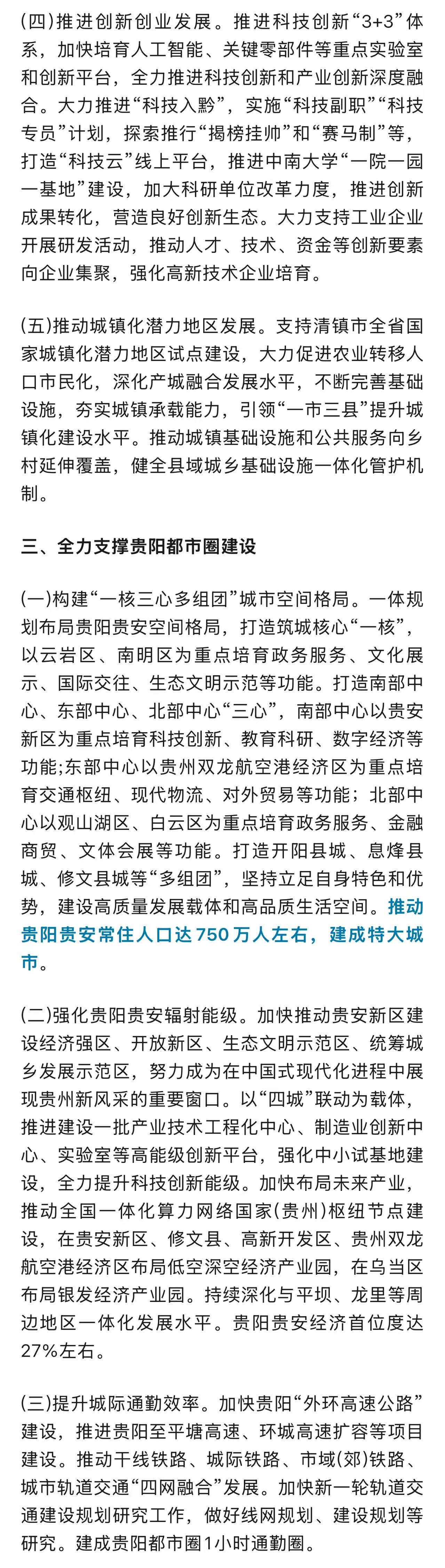 贵阳贵安将推动建成特大城市!常住人口达750万