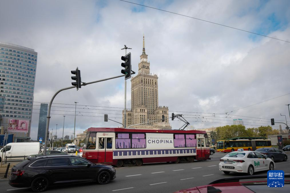 一辆“肖邦电车”驶过波兰华沙市中心。新华社发(亚普·阿林摄)