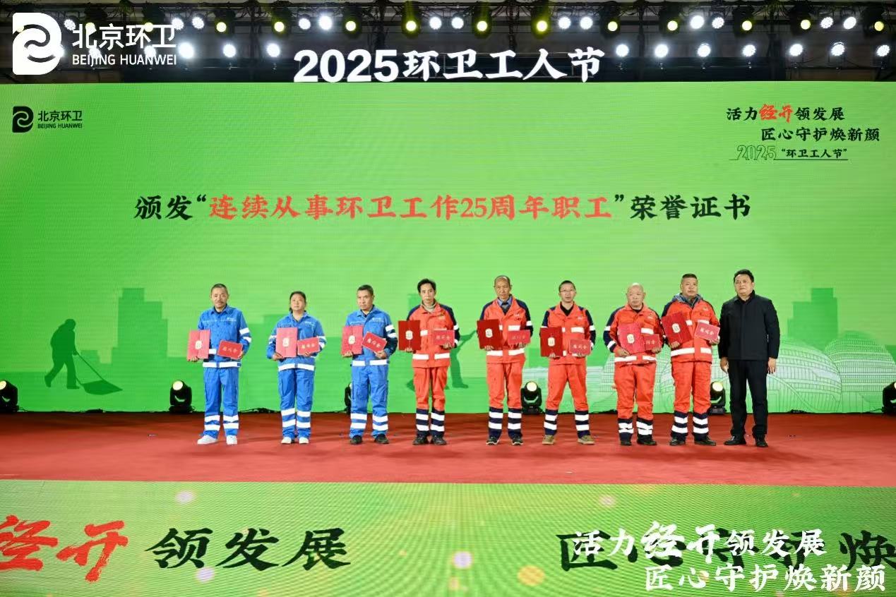 现场颁发荣誉证书活动还为连续从事环卫工作25周年职工颁发荣誉证书。随后,贵阳市综合行政执法局对全市2470余名环卫工人进行慰问。