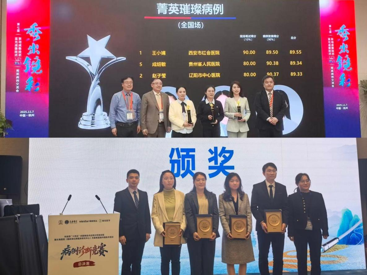 在大会同期举办的多项学术竞赛中,贵州省人民医院内镜科团队成员凭借扎实的专业知识与出色的临场表现,斩获多项殊荣。11月7日,成绍敏在第七届LCI BLI 精英病例学术交流会的“秀出镜彩”比赛中,凭借精彩的病例分析、清晰的逻辑表达与独到的诊疗思路,脱颖而出,荣获全国二等奖。11月8日,吴瑕在科技部“十四五”共聚焦技术应用示范培训班-病例诊断竞赛总决赛中,沉着应对、精准判断,最终荣获全国三等奖,作为唯一代表贵州省展现了贵州风采。