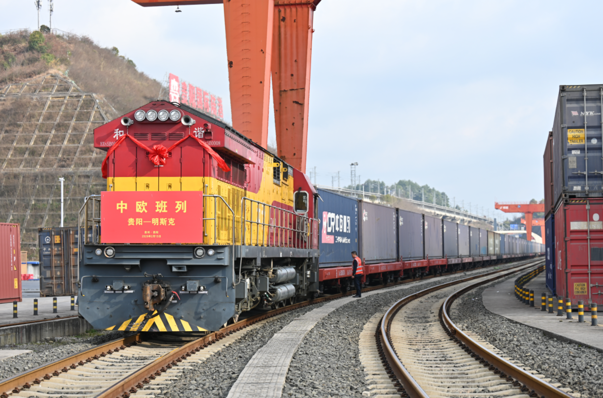 该中欧班列共承运了55个集装箱,货重超2000吨,货值超2490万元,经阿拉山口口岸出境,预计15天左右抵达白俄罗斯明斯克州若季诺站,运行全程约11650公里,是贵州省完善国际物流网络、深化对外开放布局的重要举措。