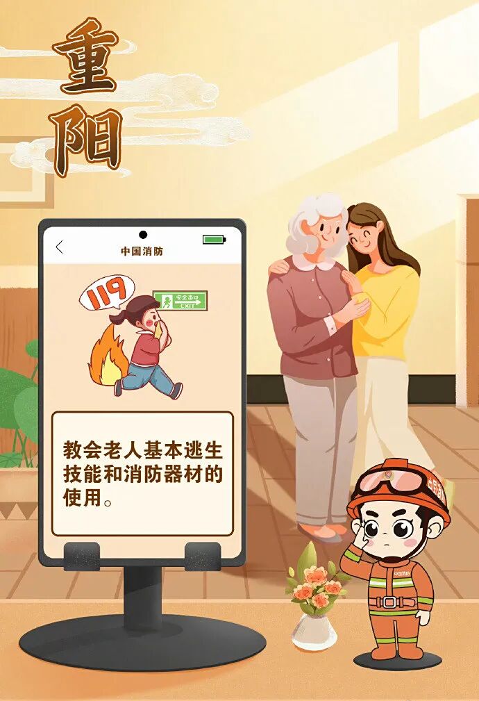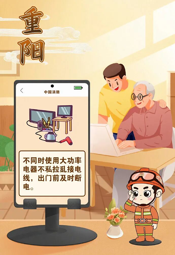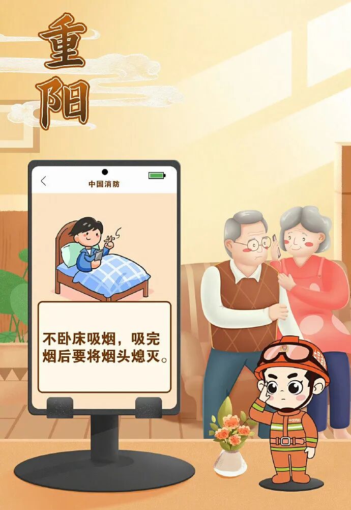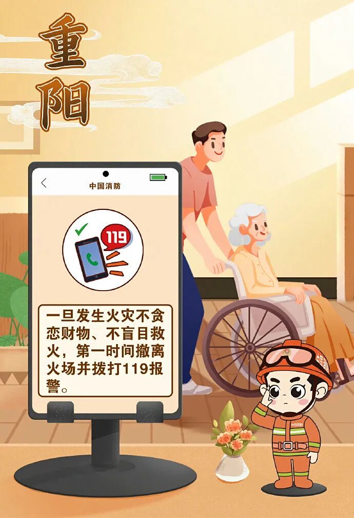 农历九月初九重阳节,承载千年文化情怀,有登高祈福、赏菊晒秋等习俗,因 “九九” 含长久之意,又称敬老节,传递尊老爱老温情,陪伴与关怀是节日主题。而平安是长辈幸福晚年的前提,消防安全尤为关键。老年人,尤其是独居、留守老人,安全意识和避险能力较弱,属火灾事故弱势群体,需格外关注其日常安全,防范事故发生。
