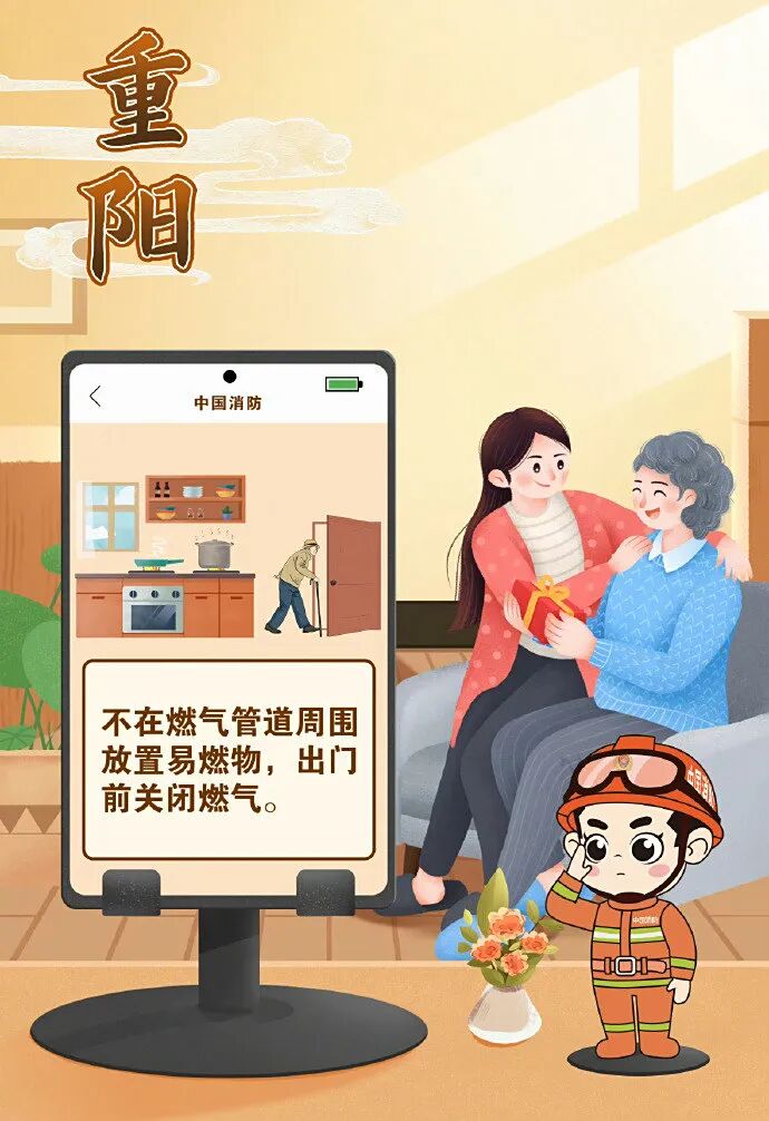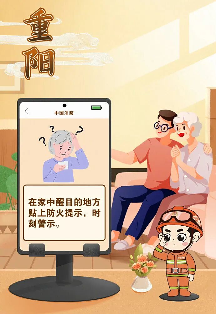 重阳敬老暖人心,消防安全莫轻心。贵阳市消防救援支队提醒大家,要多留意老人日常生活中容易忽视的火灾隐患,为老人的平安生活保驾护航,学习更多安全要点,让消防安全成为送给长辈最贴心的重阳礼物。