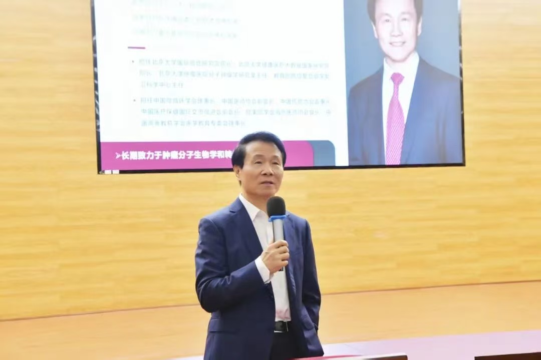 10月28日,中国工程院院士、北京大学国际癌症研究院院长詹启敏教授莅临遵义医科大学指导交流,并在该校新蒲校区人文楼学术报告厅开展专题学术讲座。遵义医科大学领导刘文、龚其海、黄海、龙奉玺,各职能部门负责人、二级学院班子成员、科技骨干、附属医院代表以及学生代表共同聆听。全场座无虚席、掌声连连,沉浸式感受这场医学与人文交融的思想盛宴。讲座由遵义医科大学党委副书记、校长龚其海主持。