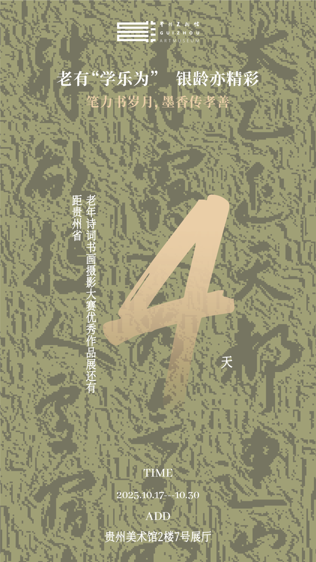 秋深墨香暖,敬老情意长。值此全国第16个“敬老月”来临之际,为展现贵州长者“老有所学、老有所乐、老有所为”的丰赡人生与艺术追求,“贵州省老年诗词书画摄影大赛优秀作品展”将于2025年10月17日在贵州美术馆2楼7号展厅优雅启幕,以笔墨为媒,续写银龄艺术的隽永篇章。