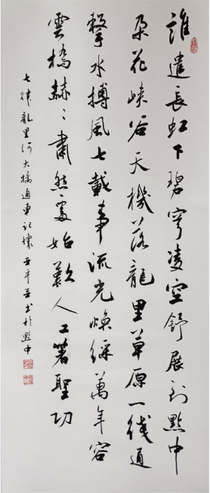 《七律:龙里河大桥通车记怀》融米芾之洒脱、羲之之清逸,以古人笔法写今人之诗,在笔墨流转间传递对时代发展的由衷礼赞。