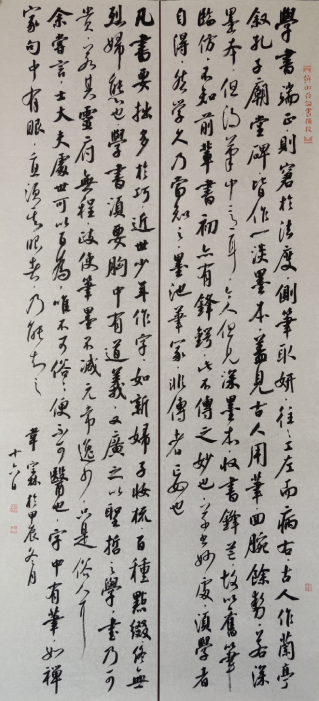 《行书·黄山谷论书摘段》以行书为主、草意为辅,六尺对开组合中尽显传统节律与当代审美的交融,笔意隽永,块面如诗。