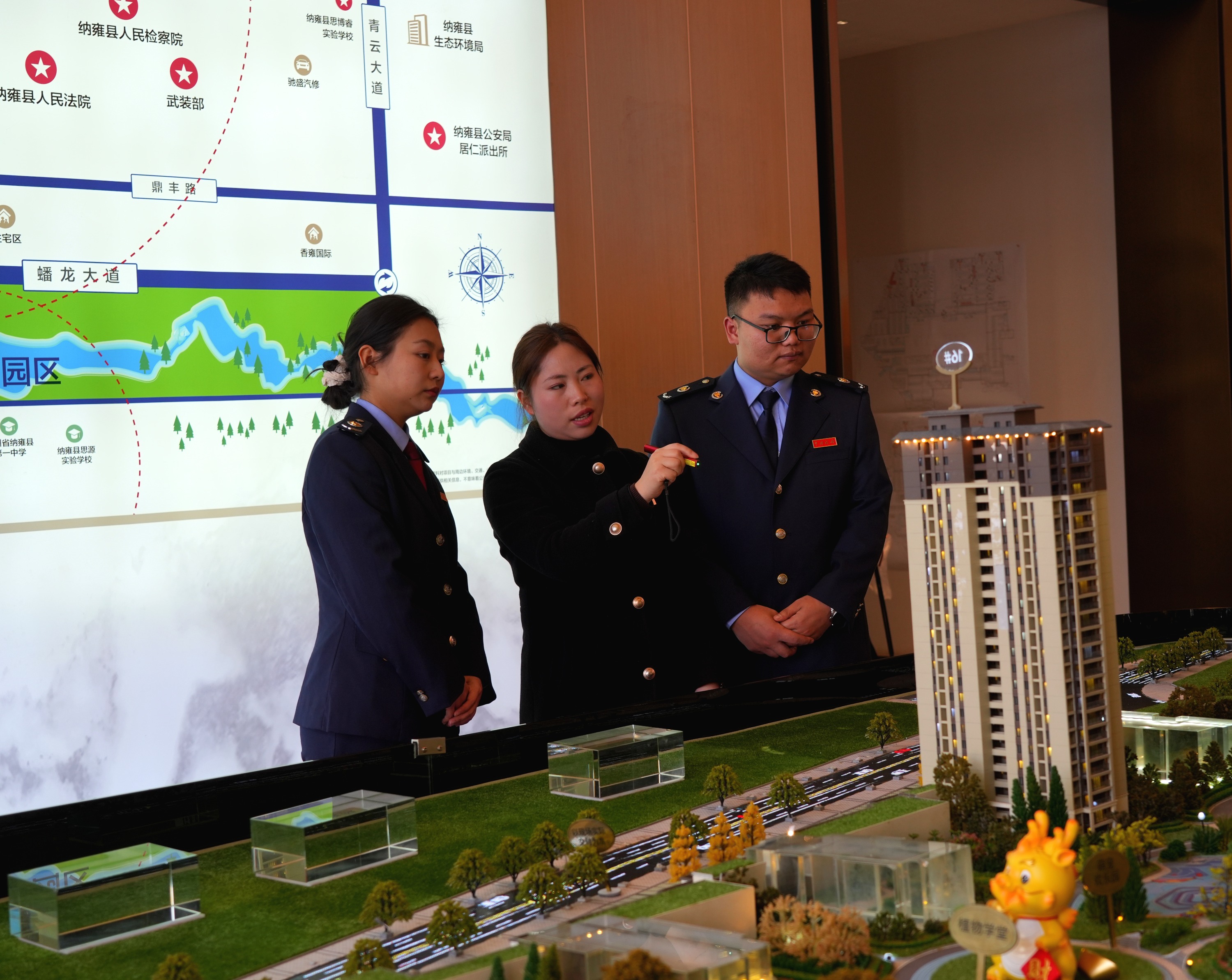 国家税务总局纳雍县税务局工作人员到贵州顶佳置业有限公司了解楼盘销售情况,辅导企业所得税申报事宜。(赵念祖摄)