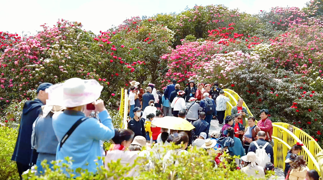 这里的杜鹃,从不必一朵一朵细赏,而是要一片一片沉浸式感受。步入花海,头顶是繁花织就的天幕,脚下是落英铺就的花径,清甜的花香萦绕鼻尖,让人沉醉其间。
