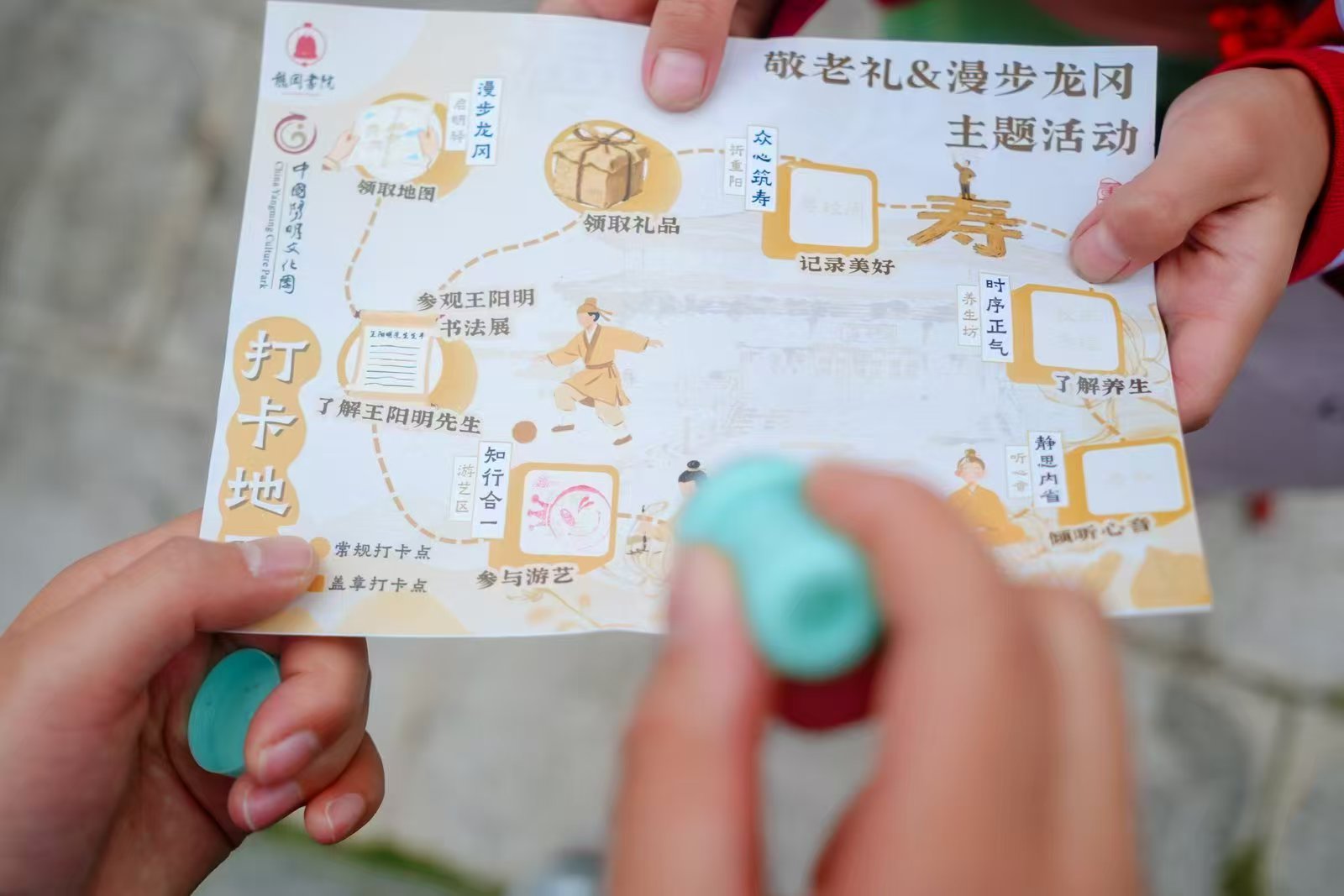 随后进行的“漫步龙冈”活动,将体育健身与人文游览自然结合。老年朋友结伴而行,漫步于浸润着阳明心学精神的龙冈。他们一边欣赏秋日园景,一边在行走中锻炼身体,同时感受“知行合一”思想的熏陶。这场漫步不仅是一次简单的健步走,更是一次身心愉悦的文化之旅,诠释了“在游览中健身,在健身中感悟文化”的融合理念。