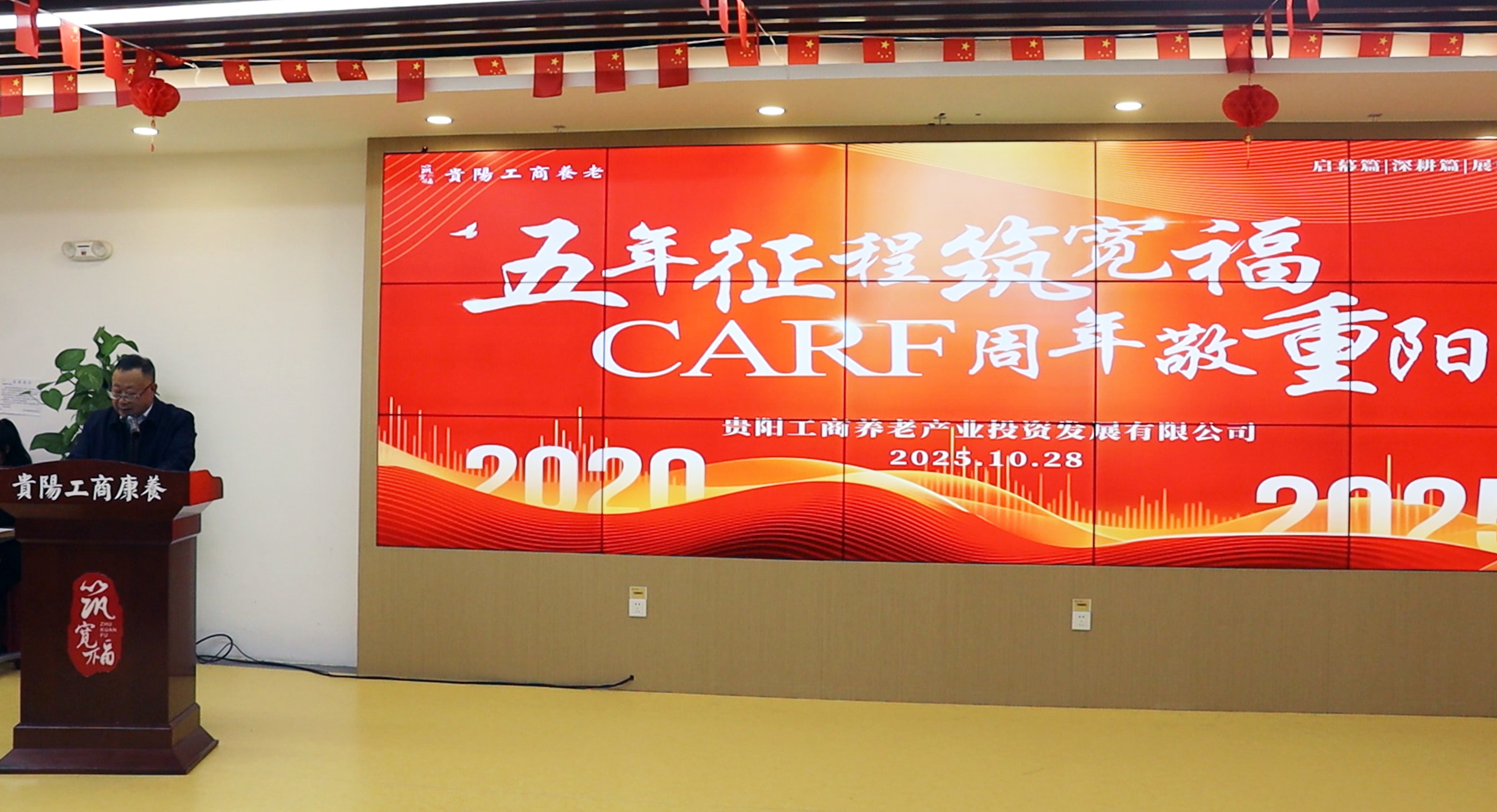 在重阳节来临之际,10月28日,贵阳工商养老公司举办“五年征程筑宽福·CARF周年敬重阳”主题活动,展现五年来深耕养老领域的成果,庆祝旗下矿山苑荣获CARF金标认证一周年。