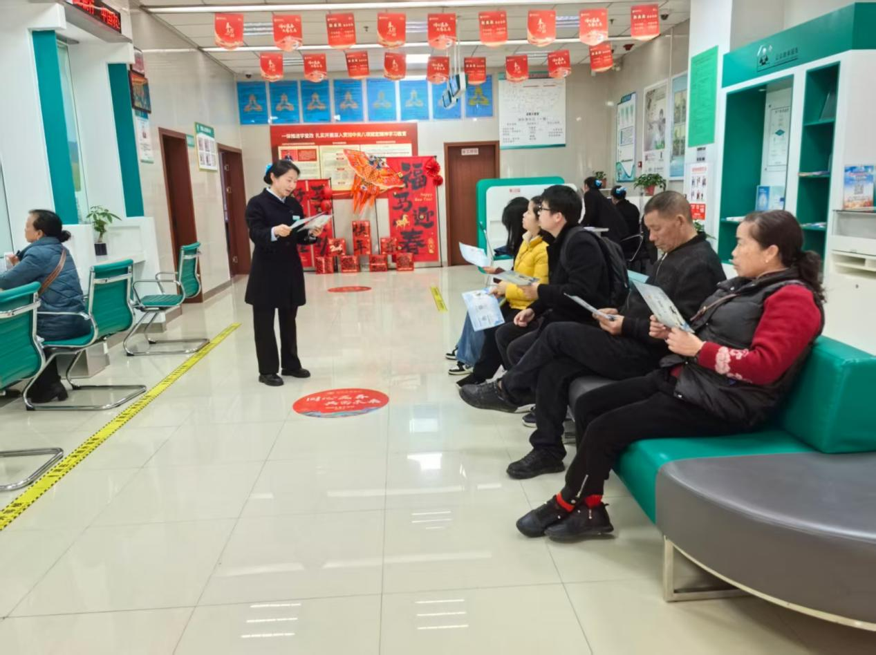 各网点精心布置宣传氛围,在等候区张贴反诈海报,填单台前摆放防范非法集资折页。柜员在办理开卡、转账等业务时,针对不同客群精准提示风险;针对老年客户,工作人员通过“一对一”讲解养老投资骗局案例,手把手教其设置转账限额、识别诈骗链接。在客流高峰时段,大堂经理开设“5分钟金融微课堂”,通过案例剖析和互动问答传授防骗知识,并设立咨询角提供征信查询、风险评估等指导。