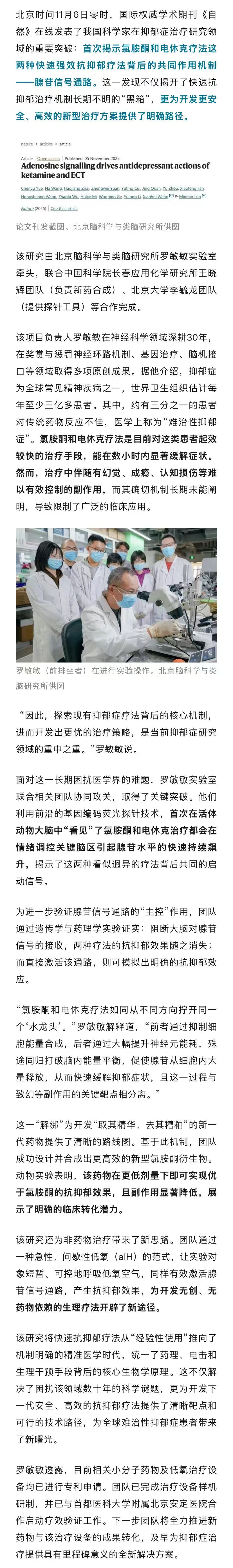 事关快速抗抑郁疗法,我国科学家有新突破!