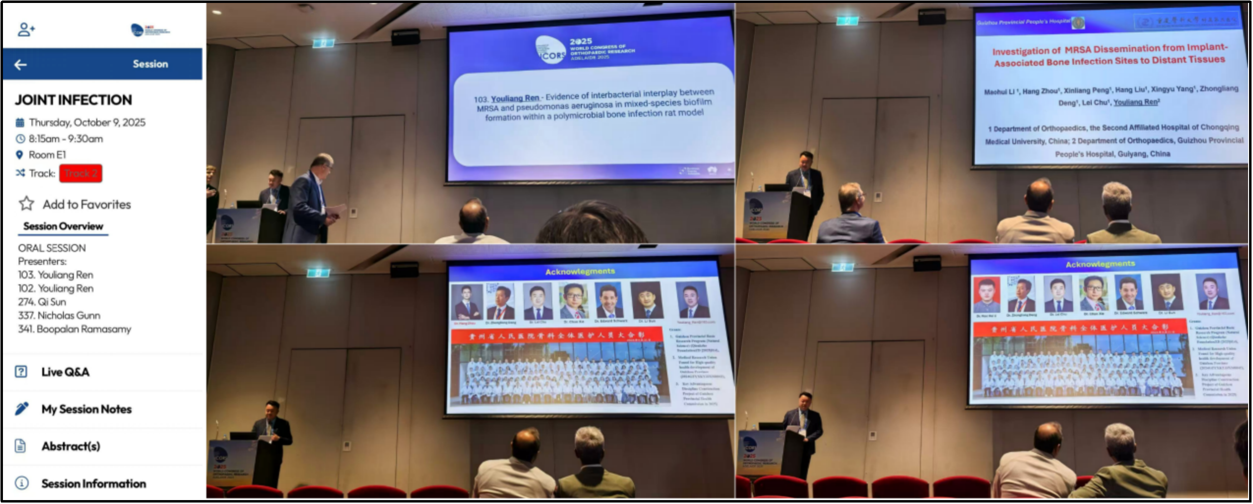 图3: 任有亮博士于2025年10月9日上午在“关节感染”专题环节进行连续两场学术汇报