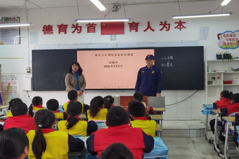 2026年3月2日,乌当区消防救援大队龙广路消防救援站走进新天三小,开展春季开学安全第一课消防安全知识讲座,为全校师生送上实用的消防安全知识,切实筑牢校园消防安全防线,提升师生消防安全意识和应急自救互救能力,营造安全稳定的校园环境。