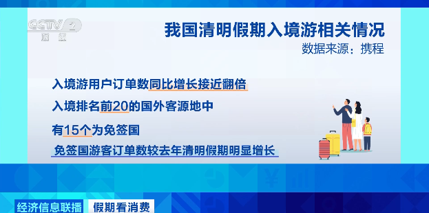 这个清明假期,入境游的活力也进一步释放。数据显示,入境游用户订单数同比增长接近翻倍。入境排名前20的国外客源地中,有15个为免签国,免签国游客订单数较去年清明假期明显增长。