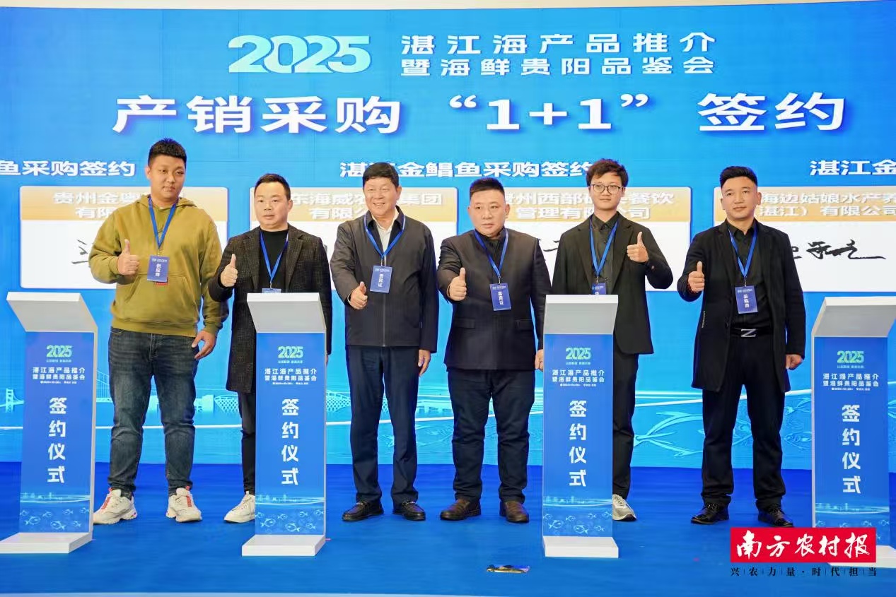 活动还举行了采购签约仪式,广东海威农业集团有限公司、贵州西部码头餐饮管理有限公司等12家企业签订,在贵州省市场销售金鲳鱼、对虾、生蚝等海产品,签约金额3000多万元。