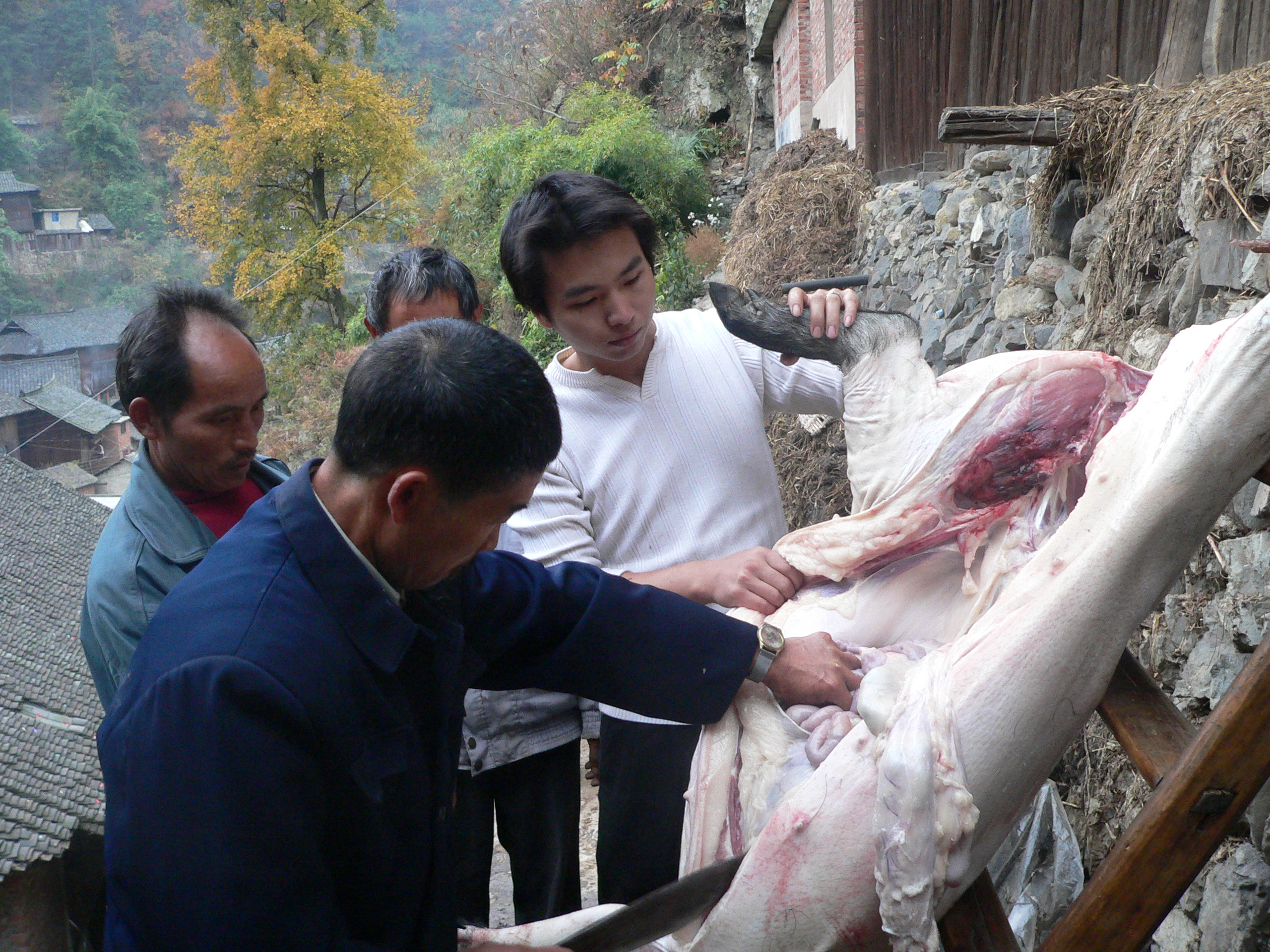 西江苗寨村民过苗年杀猪 李天翼 摄