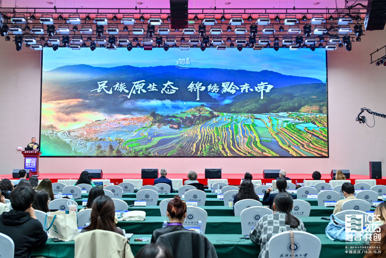 第三届时尚与可持续发展国际会议由湖北省教育厅指导,武汉纺织大学、中国纺织服装教育学会主办,以“融合·共创:科技与文化助力时尚可持续发展”为主题,于10月26日至29日在武汉纺织大学举办,主要活动内容包括开幕式、主旨报告、“一带一路”专题论坛、黔东南民族文化展演、可持续设计作品展等内容,旨在通过科技赋能与文化传承的双重驱动,推动时尚产业向绿色化、智能化、全球化转型。国内外非遗、纺织服装领域的知名专家学者、企业代表和师生以及黔东南州施秉舞水云台、丹寨宁航蜡染、贵州榜香郁苗绣服饰、凯里村T、凯里杨平生银饰、黔东南州三黎文化旅行社等相关企业携非遗文创产品参加活动。