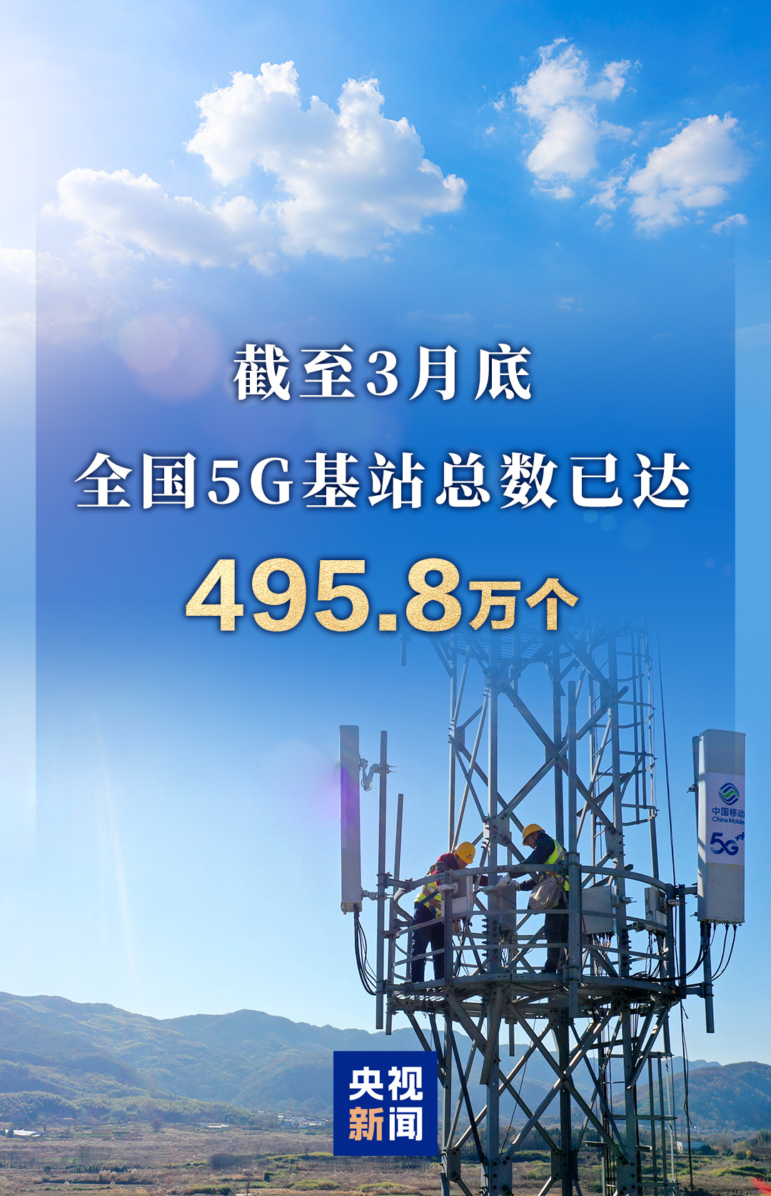 截至3月底,全国5G基站总数已达495.8万个。全国86个城市的168个小区、工厂和园区开展万兆光网试点部署,5G-A(5G演进网络)已覆盖330个城市。
