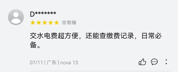 新功能上线以来,用户反馈积极。不少市民在应用评论区表达了使用体验的提升。普遍认为升级后的鸿蒙版多彩宝“更智能、更贴心、更省心”。“交水电费超方便、还能查缴费记录,日常必备!”一位用户分享道,这正反映出“数据多跑路、群众少跑腿”的服务理念已落地见效,也印证了鸿蒙在降低数字门槛、弥合“数字鸿沟”方面的价值。这些真实的声音,不仅展现了新功能的实用性,也反映出数字政务服务正以更人性化的方式融入市民日常生活。