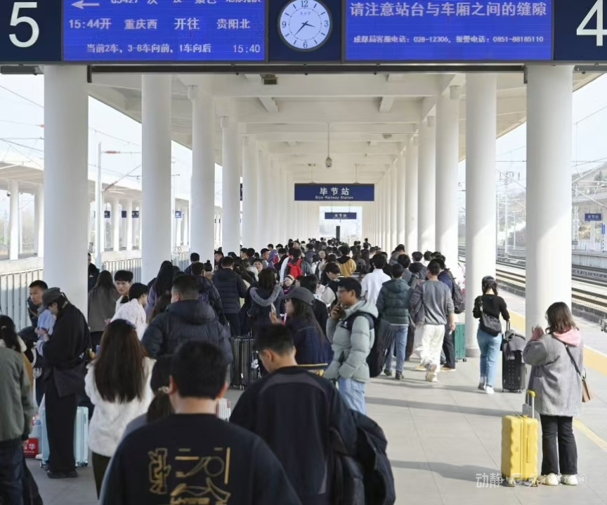 3月13日,为期40天的2026年春运圆满结束,贵阳车务段累计发送旅客198.49万人次,同比增长20%。其中毕节站发送旅客57.7万人次,安顺西站发送旅客37.15万人次,兴义南站发送旅客19.69万人次,黔西站发送旅客21.09万人次,盘州站发送旅客21.6万人次。
