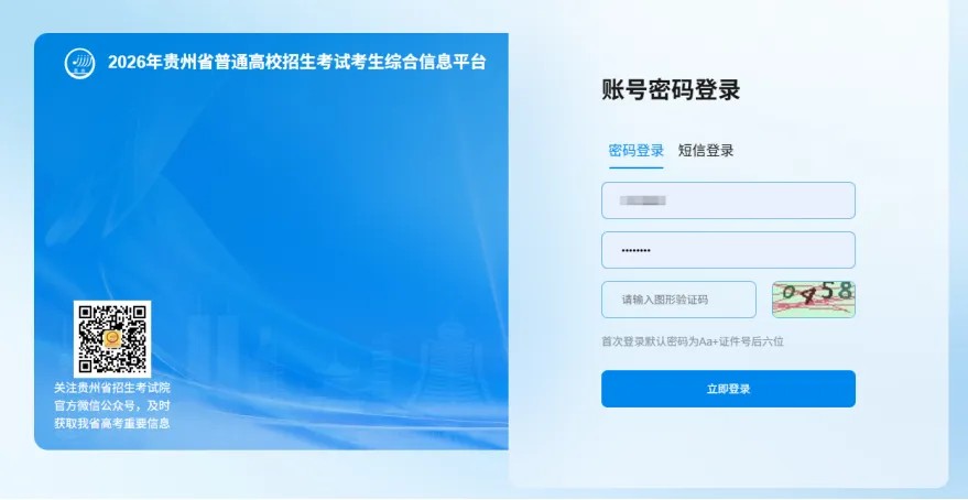 考生完成实名认证后即可通过电脑端或“贵州招考”APP登录网上报名系统。电脑端通过浏览器(推荐使用谷歌浏览器)访问贵州省普通高校招生考试考生综合信息平台(http://gkks.eaagz.org.cn),输入身份证号和密码进行登录。