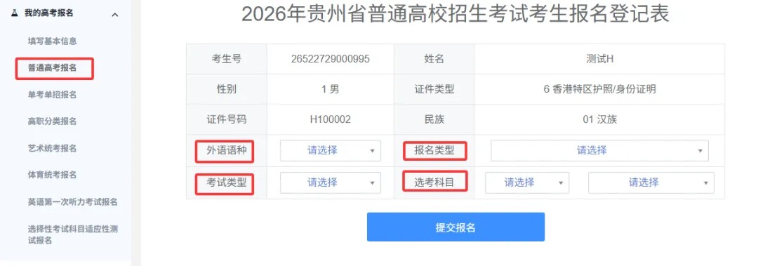 贵州省2026年高考11月1日起报名!操作步骤来了