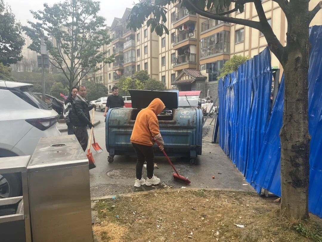 现场,大家认真清扫路面垃圾、枯枝落叶,仔细清运垃圾桶周边散落垃圾,对房前屋后乱堆乱放、公共区域暴露垃圾进行“地毯式”整治,用双手为社区“美颜”,赢得居民点赞。