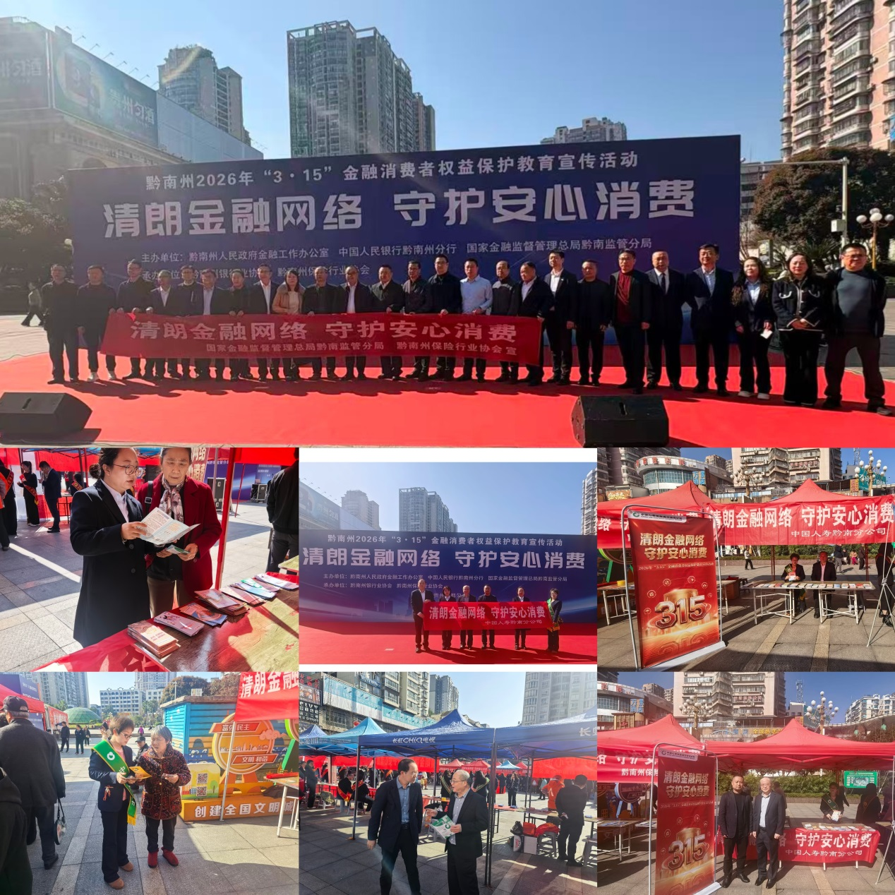 近日,由黔南州保险行业协会组织的“清朗金融网络 守护安心消费”2026年“3·15”金融消费者权益保护教育宣传活动在都匀市人民广场举行。中国人寿黔南分公司积极参与。